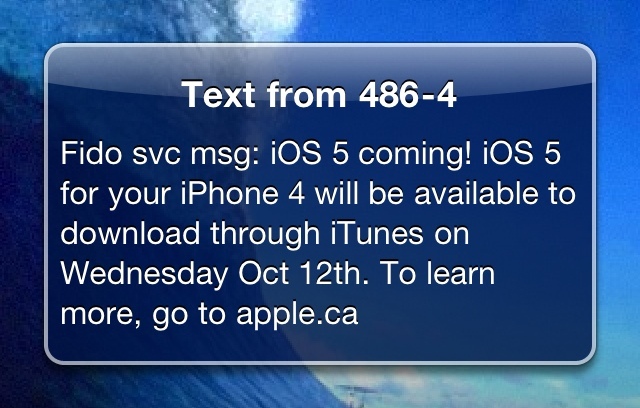Useful SMS from Fido (carrier), a first!