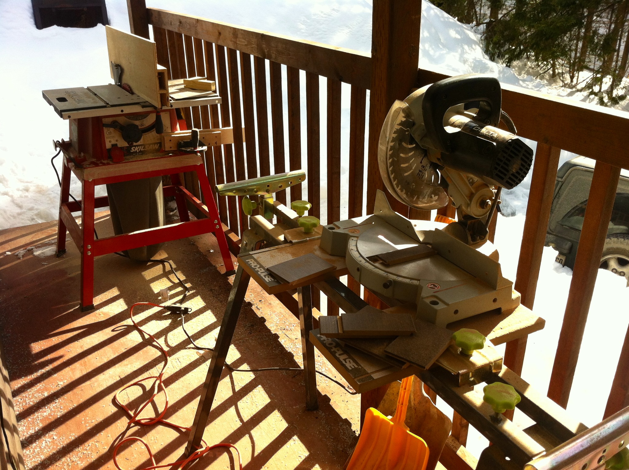 Found this beauty while hiking with my son and dogs in the woods of Mont Saint-Sauveur today. Pretty cool that someone took the time to bring gear and materials way out there. Not an easy feat: no trails, pretty steep, and quite slippery at all times. They even have a full metal rail.
